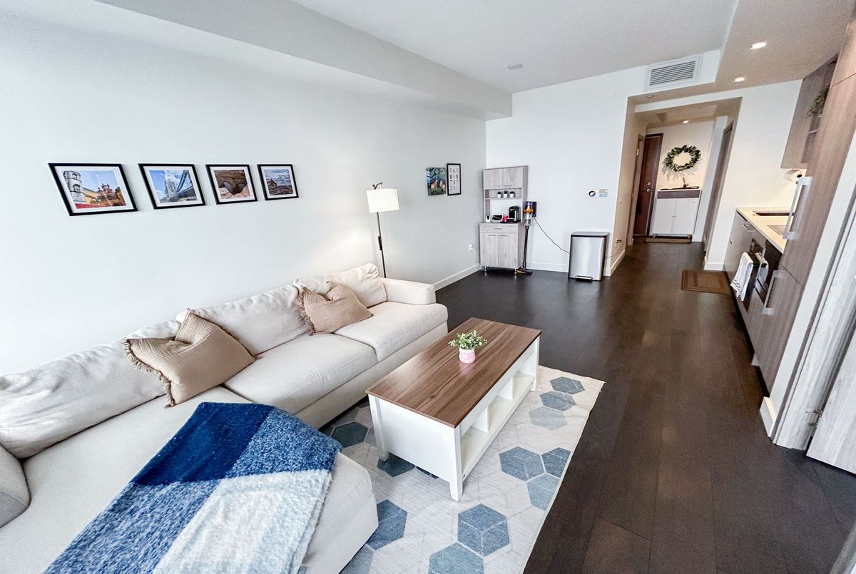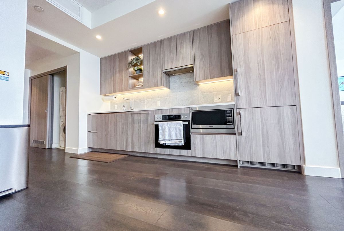 Stunning 1-bedroom condo offering a highly functional layout and an exceptional 150 sq ft extra-large balcony with unobstructed views. The sleek open-concept kitchen is equipped with quartz countertops, premium appliances, and integrated smart home technology. Soaring 9-ft ceilings and floor-to-ceiling windows flood the space with natural light, enhancing its bright and spacious feel. Situated in the prestigious Bayview Village community, just steps to Bessarion Subway Station, TTC access, and the new community centre. Enjoy unmatched connectivity with quick access to Hwy 401, 404, and the DVP, as well as the GO Station, Bayview Village Shopping Centre, Fairview Mall, IKEA, Canadian Tire, and more. This luxury Concord Seasons residence features world-class amenities, including an 80,000 sq ft mega amenity facility, state-of-the-art fitness centre, swimming pool, tennis court, touchless car wash. .Includes one premium extra-large parking spot with EV charging and one locker. An excellent floor plan paired with unbeatable convenience in the heart of North York!