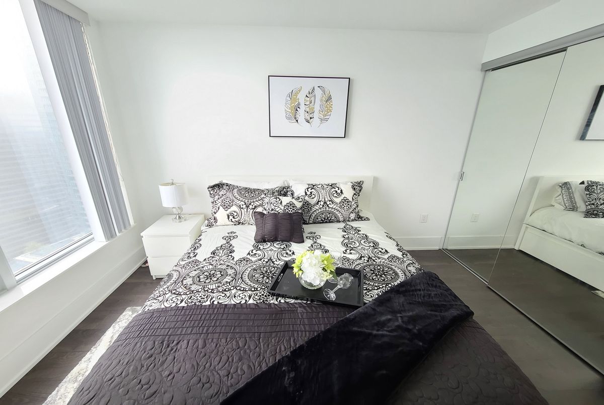 Sky-High Luxury Living by Tridel! Welcome to your dream condo on the 37th floor with breathtaking views of CN Tower and an unbeatable lifestyle! This spacious 1 bedroom, 1 bathroom unit 582 sq. ft. is perfectly designed with open concept living and countless upgrades. Step inside and fall in love with: Modern finishes throughout: sleek laminate floors, stylish backsplash & quartz countertops. European appliances including built-in dishwasher & microwave. State-of-the-art keyless entry building for convenience & security. One locker included for extra storage. Enjoy world-class amenities at The Shore Club (8th Floor) a private retreat featuring fitness, social, and lifestyle spaces that elevate condo living. And the location? 100% Walk Score! Step out your door to explore hundreds of restaurants, cafes, shops, and transit options. The best of city living is literally at your doorstep. Note: Photos are from earlier and provided for reference only. This is your chance to own a stylish Tridel condo in the heart of it all with very low maintenance fees and everything you need for modern living. Don't wait suites like this move fast!